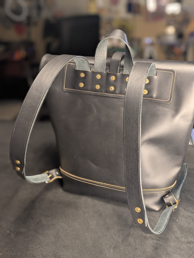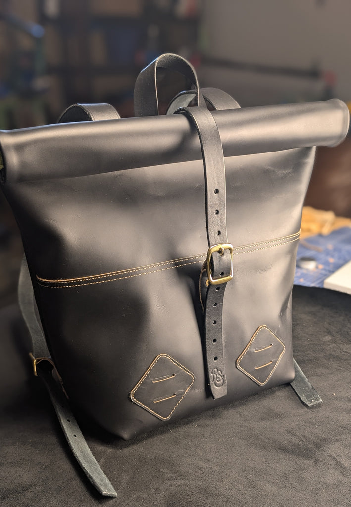 The truffle leather rolltop bag is made from a 5-6oz full grain vegetable tanned leather. Accompanied by solid brass hardware and burr rivets, it is a perfect addition to any outodoor activity or day to day errand. The sleek dark look with tanned interior is only bested by its water resisitance and large carrying space. With adjustable shoulder strap lengths and blanket roll slips on the front, it is guaranteed to fit everyone and look even better with age.